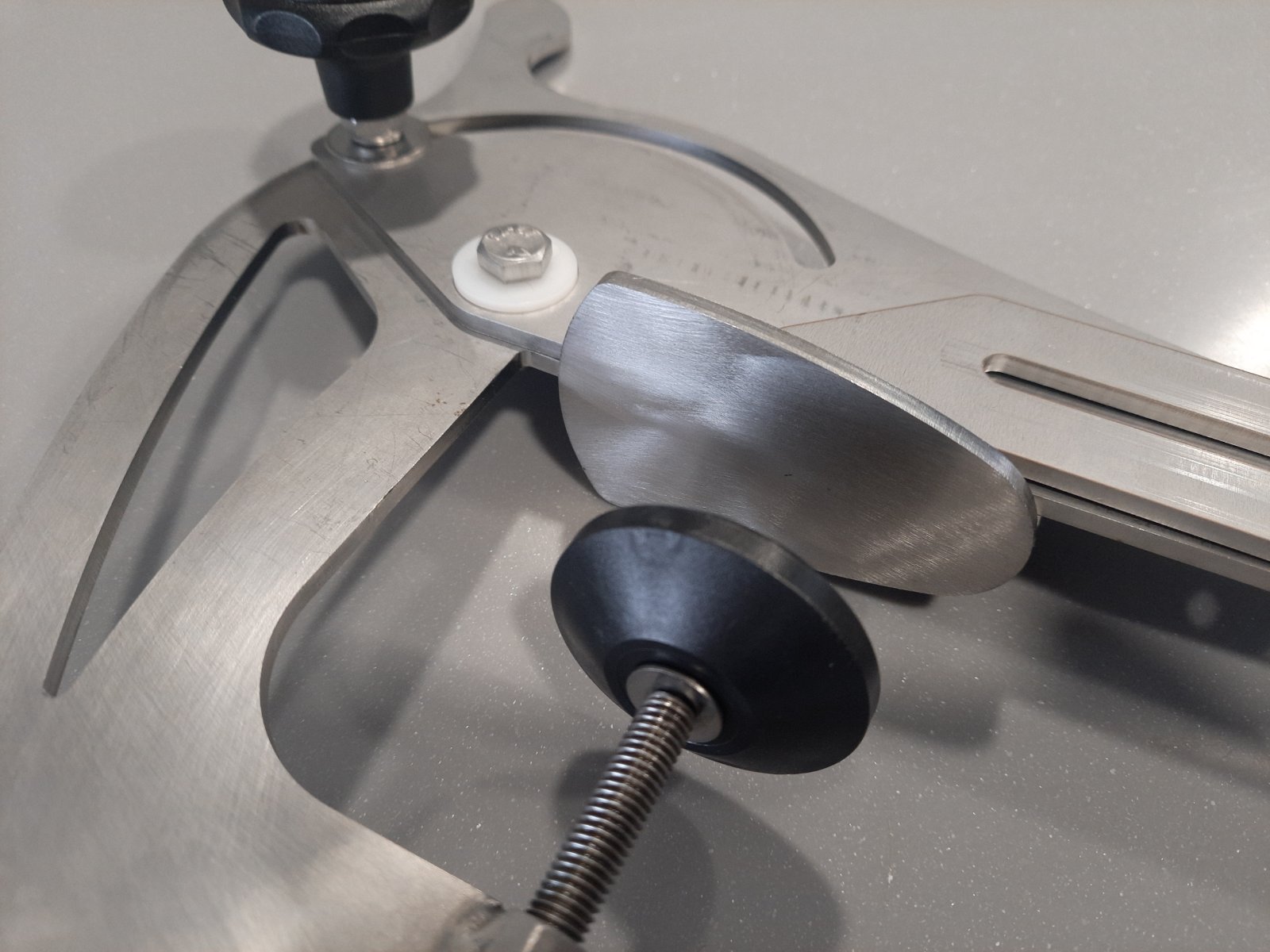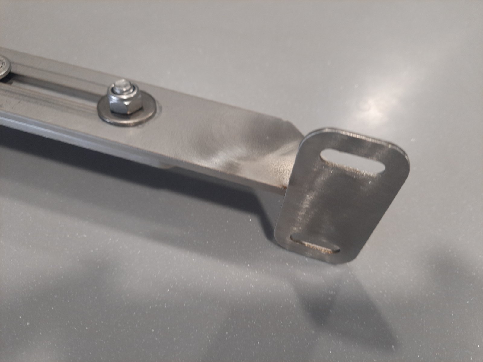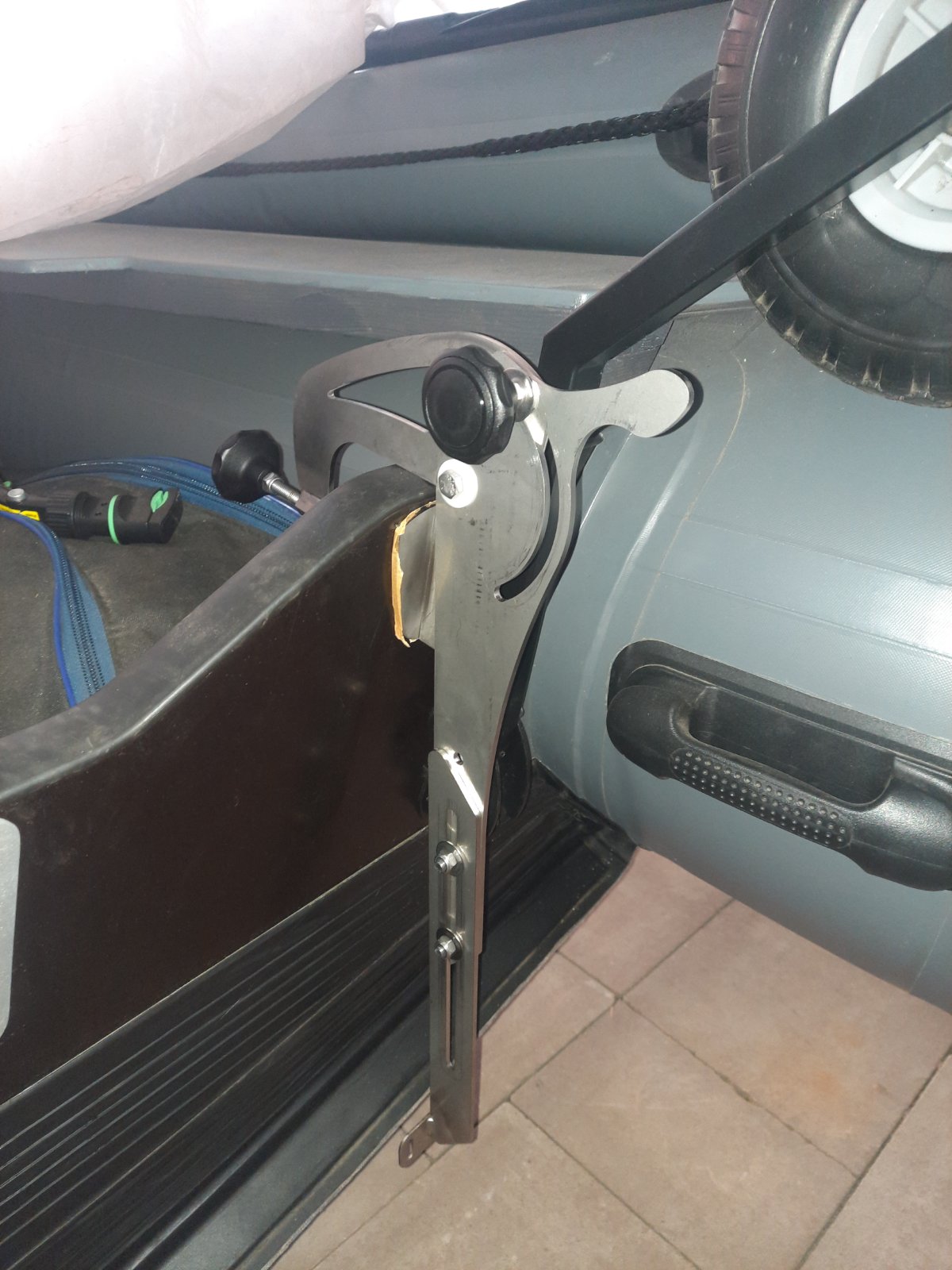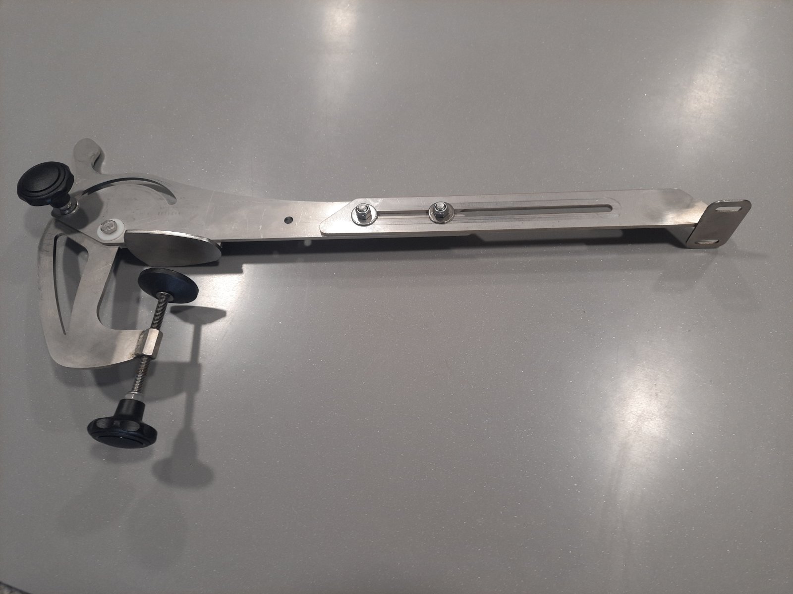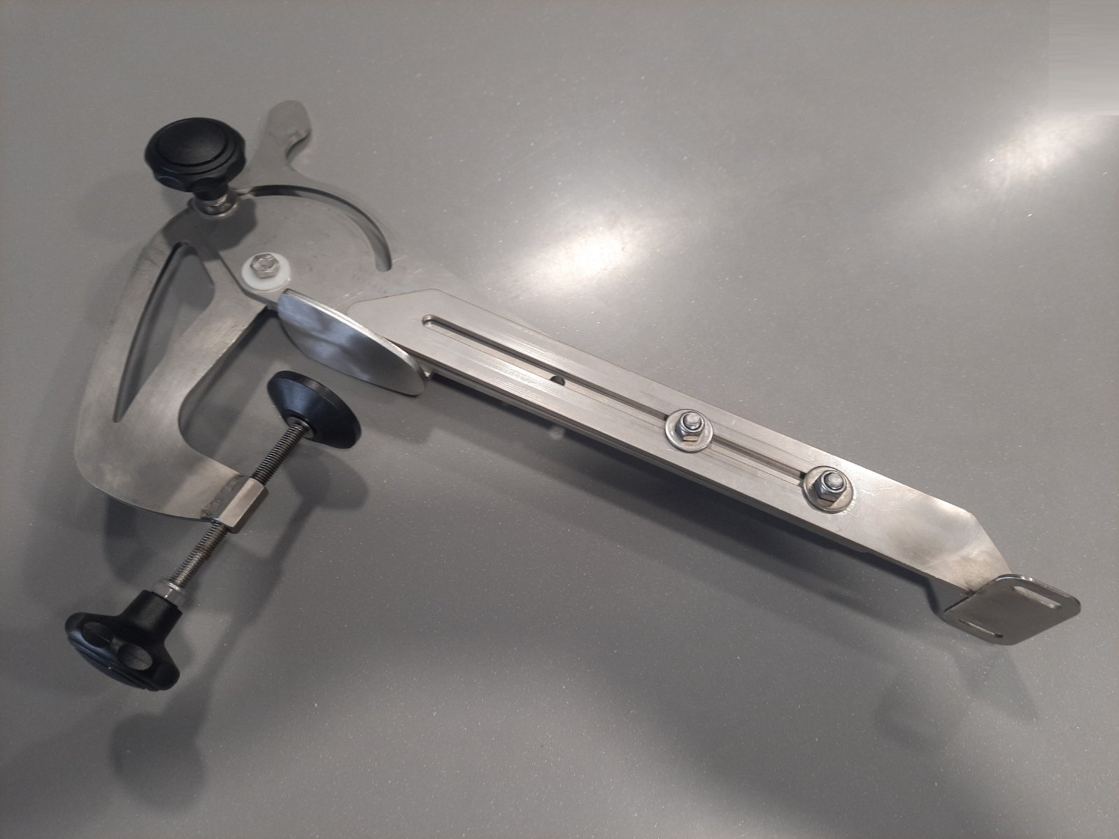 Swivel and folding flat clamp for mounting the fish finder sensor made of stainless steel.